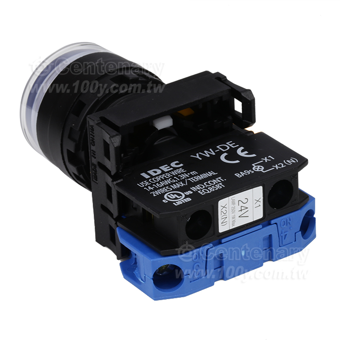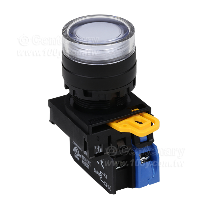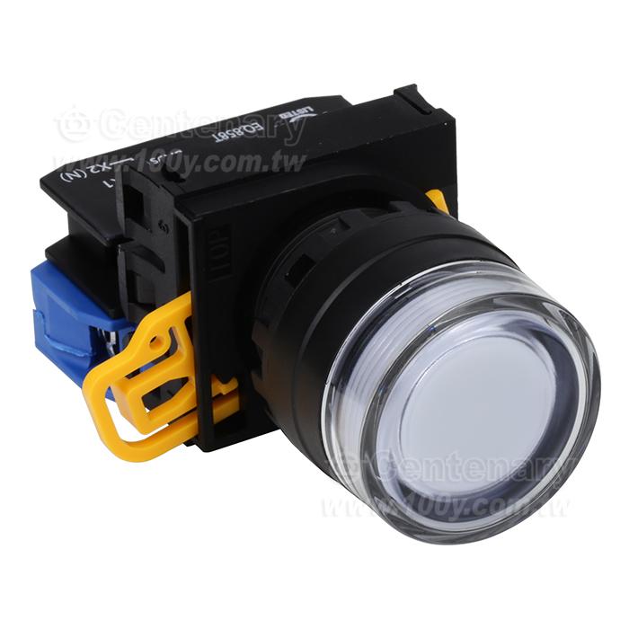 緊急停止按鈕開關22mm-全保護罩型凸頭形-LED瞬時型1NO 24VDC 白色