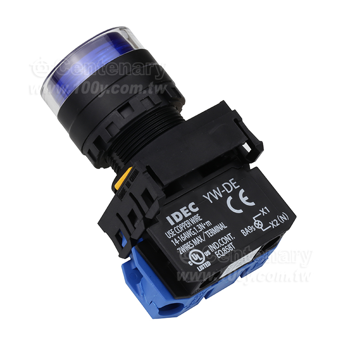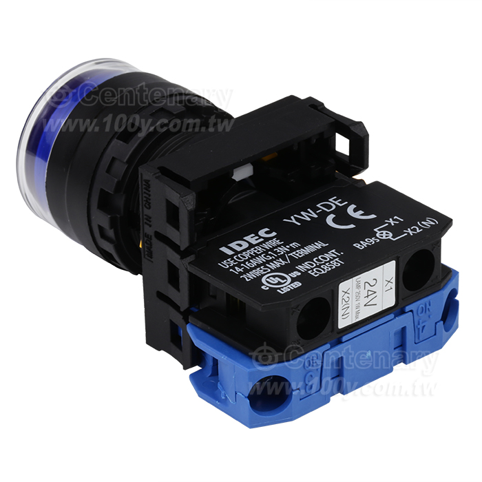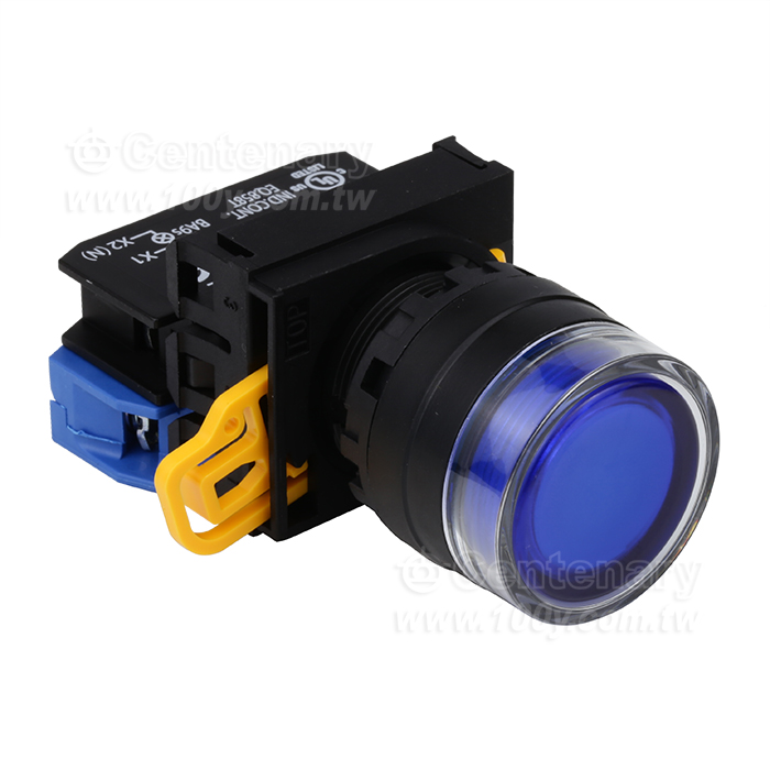 緊急停止按鈕開關22mm-全保護罩型凸頭形-LED瞬時型1NO 24VDC 藍色
