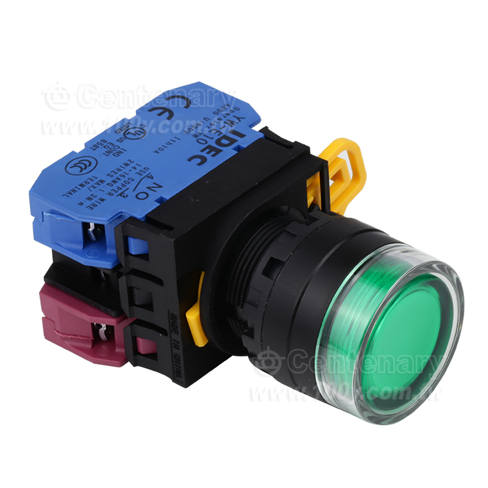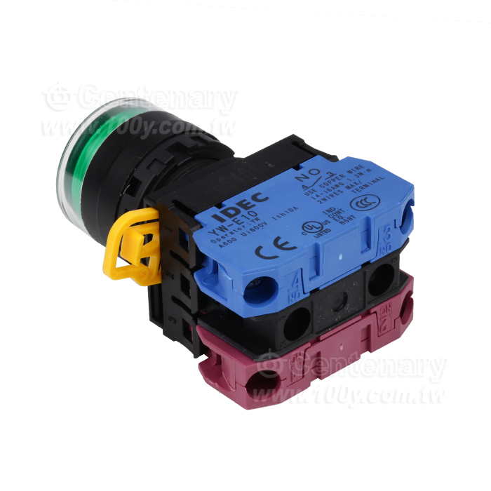 緊急停止按鈕開關22mm-全保護罩型凸頭形-白熾燈泡交替型1NO-1NC 24VDC綠色