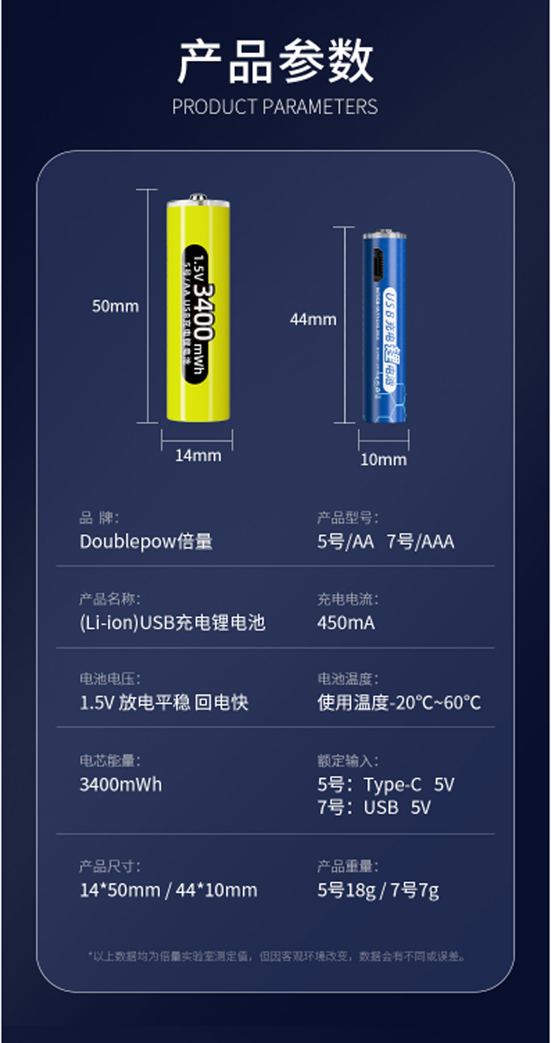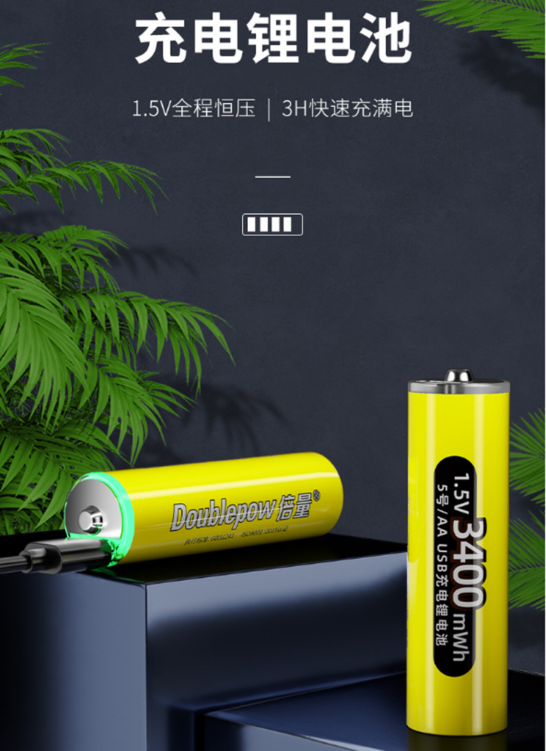 USB AA(5號) 充電鋰電池 1.5V/3400mwh