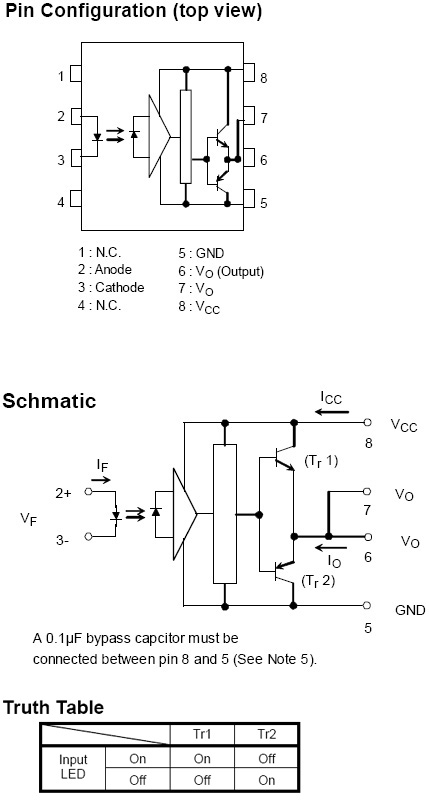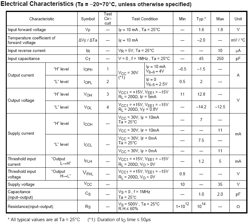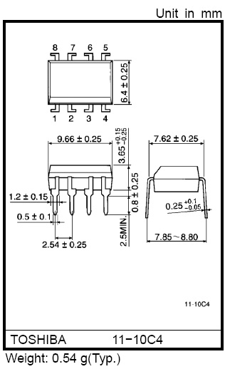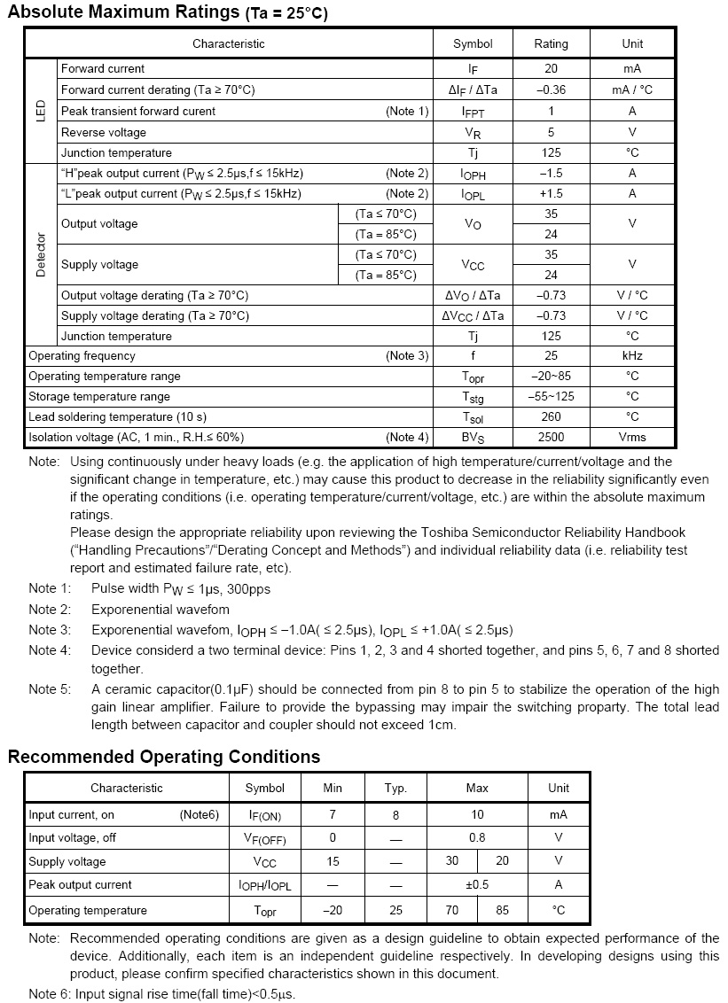 The TOSHIBA TLP250 consists of a GaAlAs light emitting diode and a integrated photodetector.