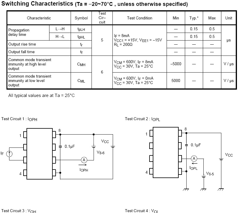 • Switching time (tpLH/tpHL): 0.5μs(max.)