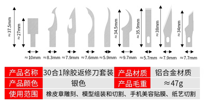 多功能除膠維修套裝銀色 手柄1件+29刀片
