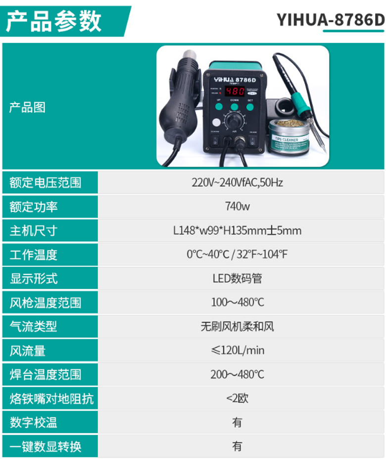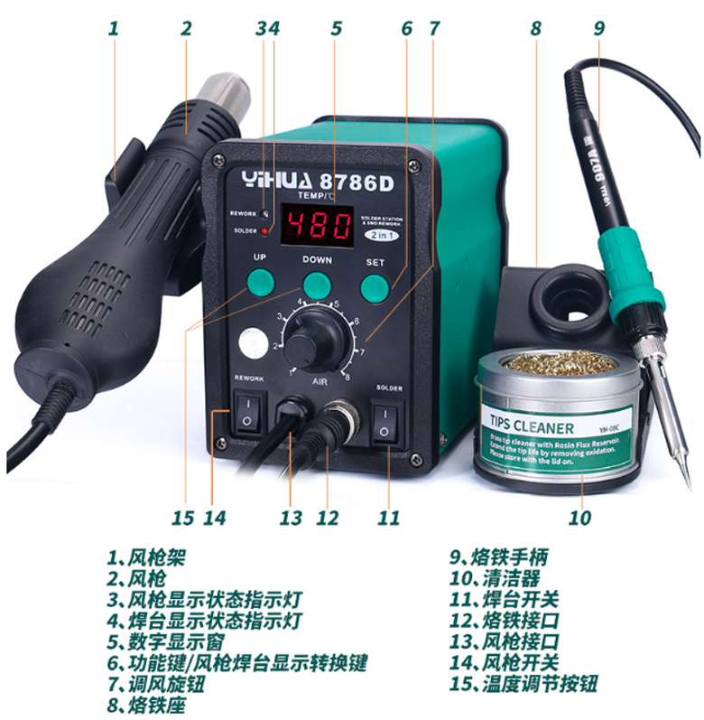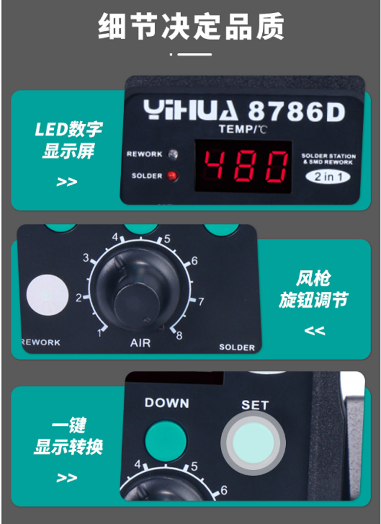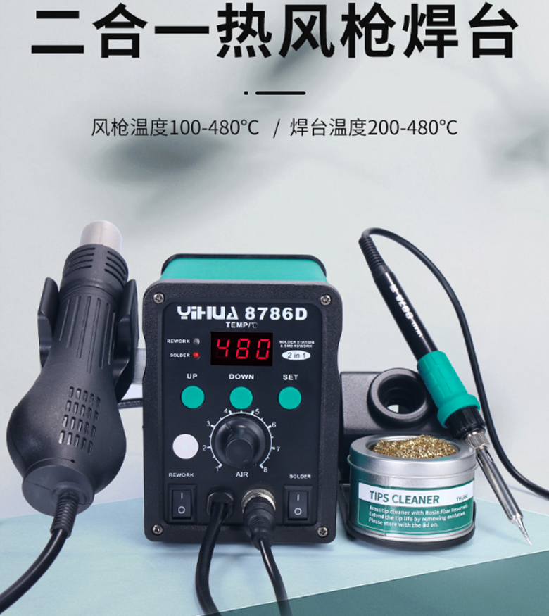 8786D 數顯可調溫熱風槍 焊台 二合一