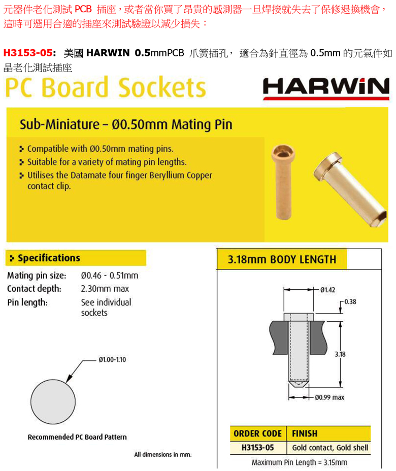 鍍金0.5mmPCB 爪簧插孔 開孔1.0-1.1mm