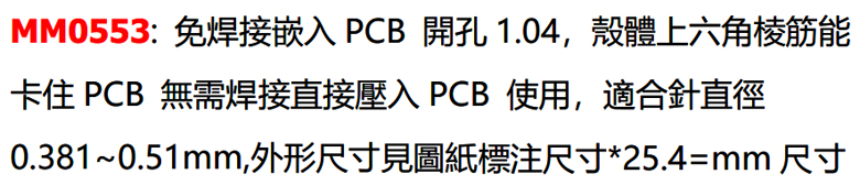 鍍金1.04mm 免焊嵌入式 PCB爪簧插孔
