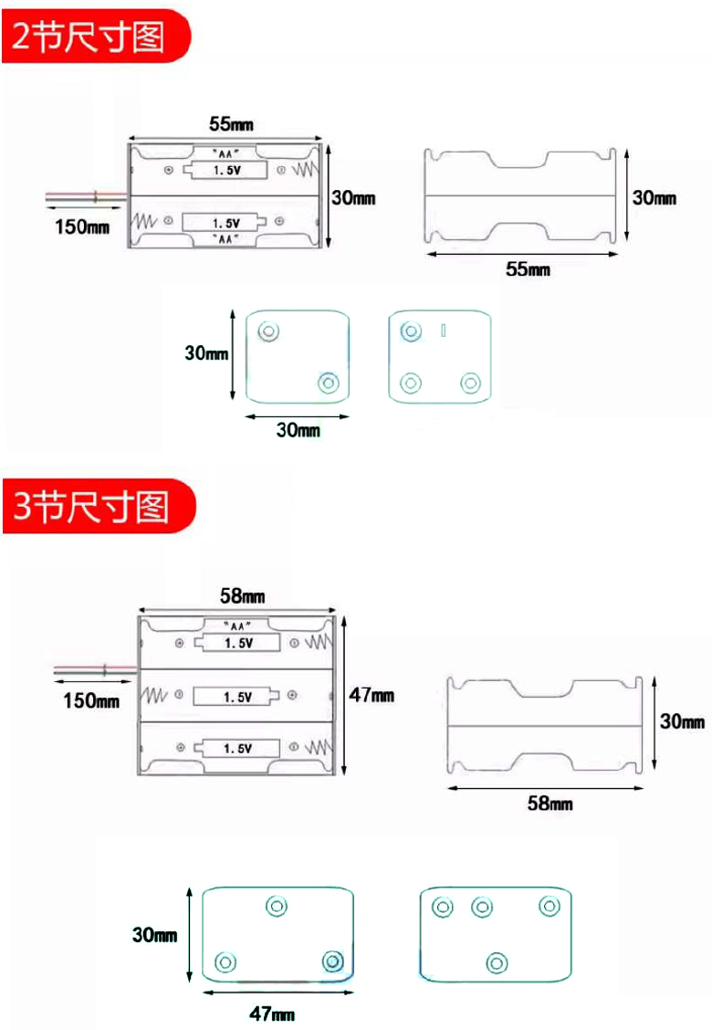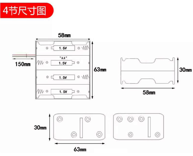 雙層3號AA背靠背電池盒方型帶DC頭-8只