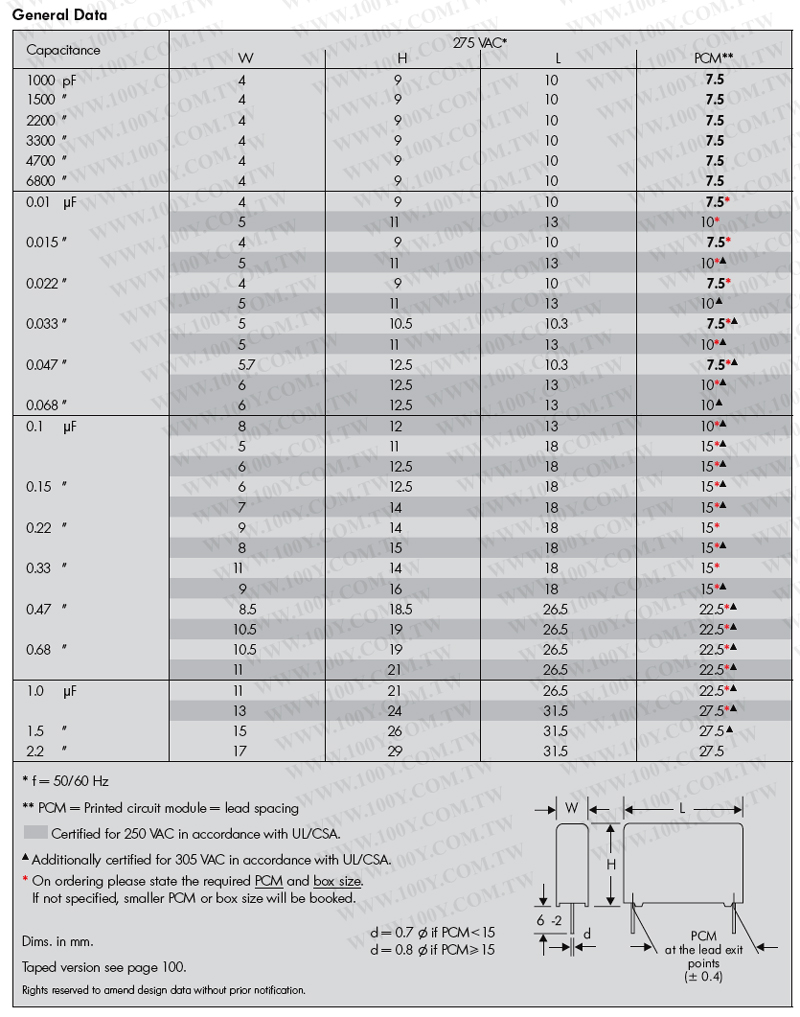 MKP-X2-0.1uF/275V-10mm