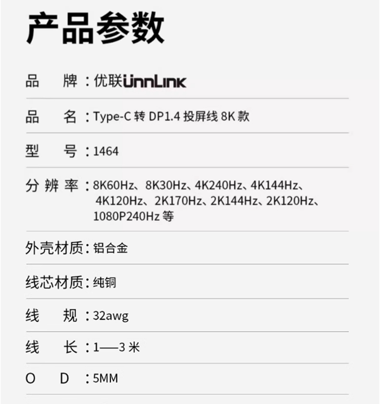 Type-C+DP-1.4版-8K/60Hz+4K/144Hz-3M