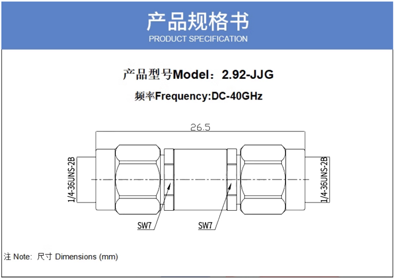2.92mm-J+2.92mm-J-40G-不銹鋼轉接器-1.2