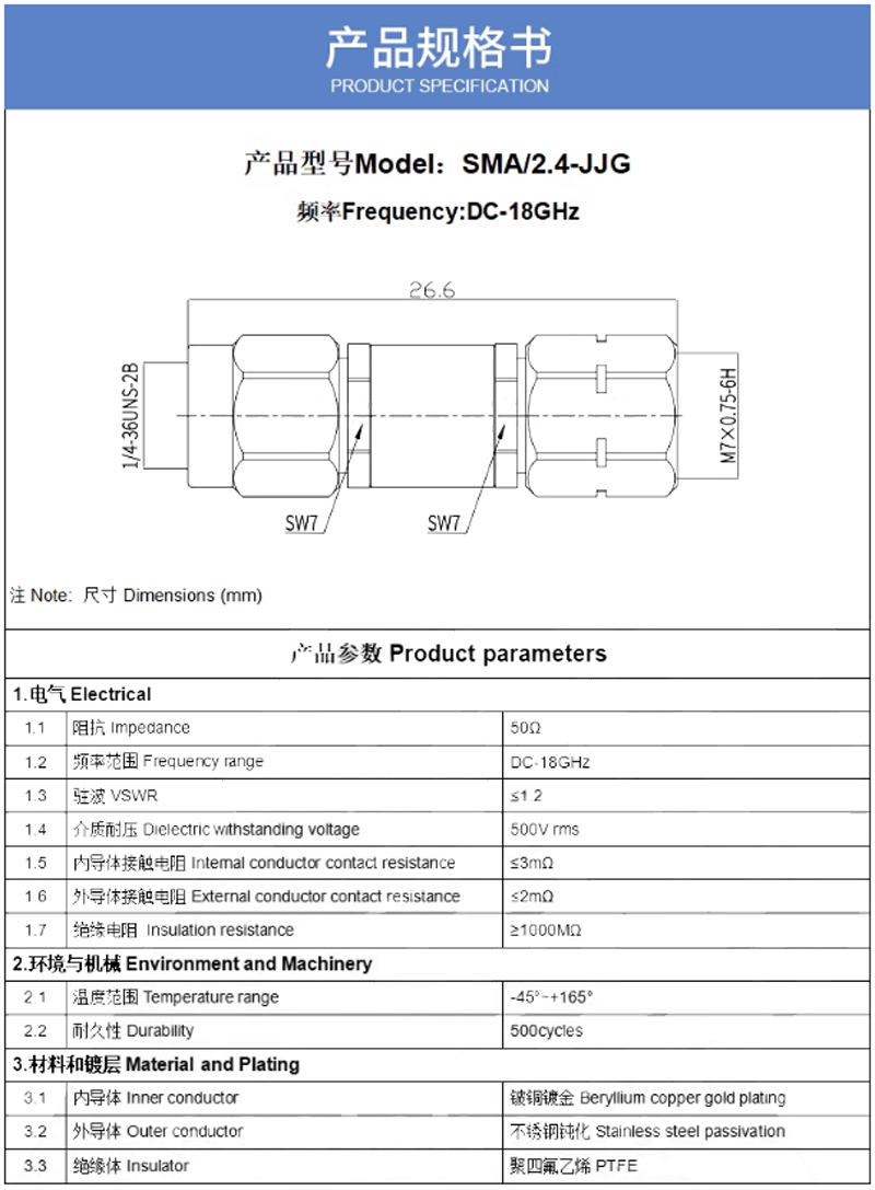 SMA-J+2.4mm-J-18G-不銹鋼轉接器-1.2