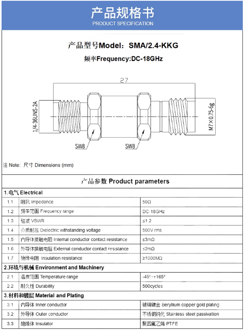 SMA-K+2.4mm-K-18G-不銹鋼轉接器-1.2