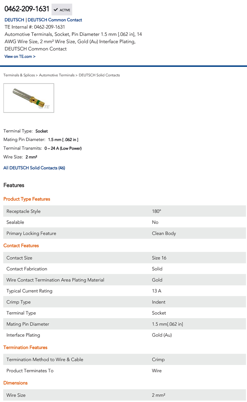 HD30系列 TE_端子 鍍金 壓接14AWG