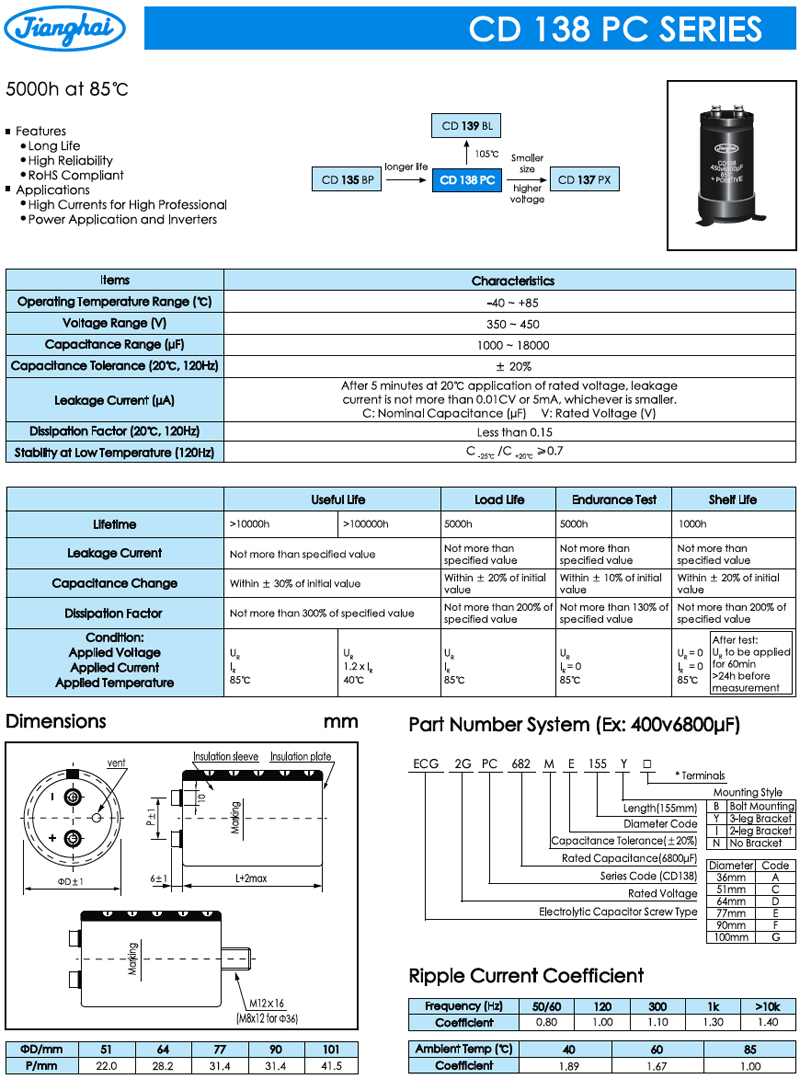 Jianghai_CD138系列 銷螺絲電解電容