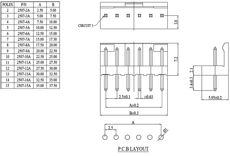 2.5mm 3P 公座 (ROHS)