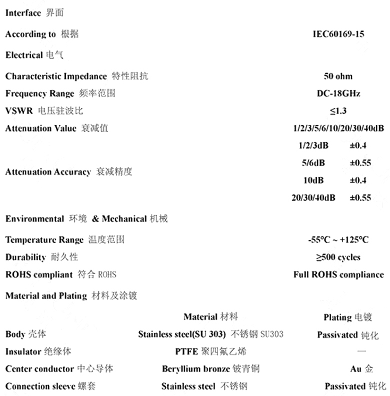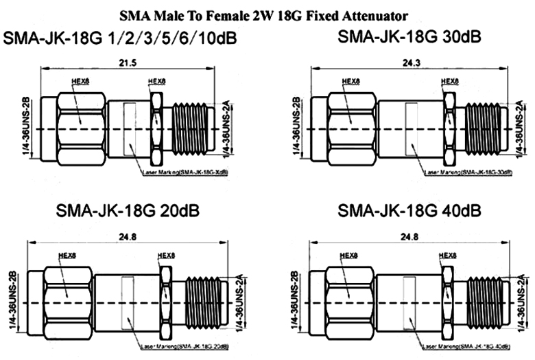 DC-18G固定衰減器5dB 不銹鋼2W SMA公轉母