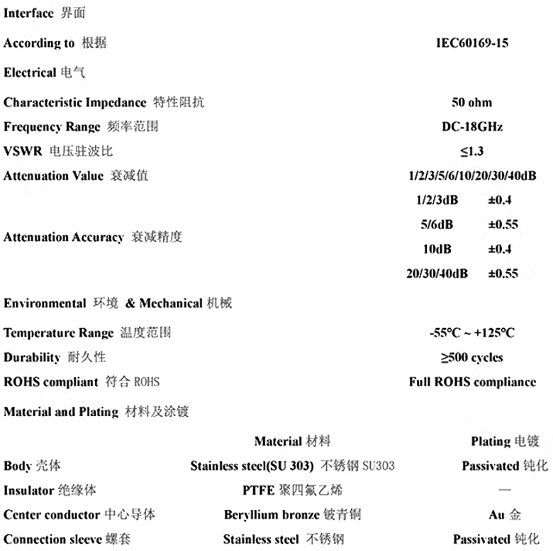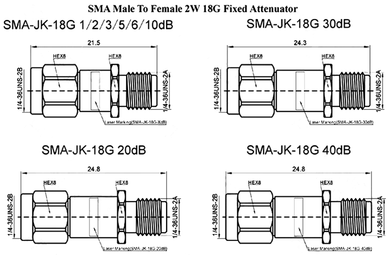 DC-18G固定衰減器40dB 不銹鋼2W SMA公轉母