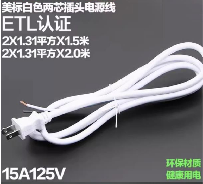 美標2P電源線 尾端剝皮 1.31平方 1.8米 白色