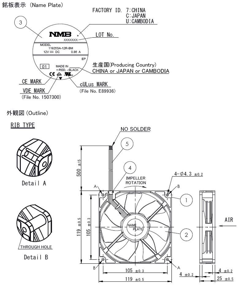 NMB_DC12V 直流风扇 4線 119x119x25mm