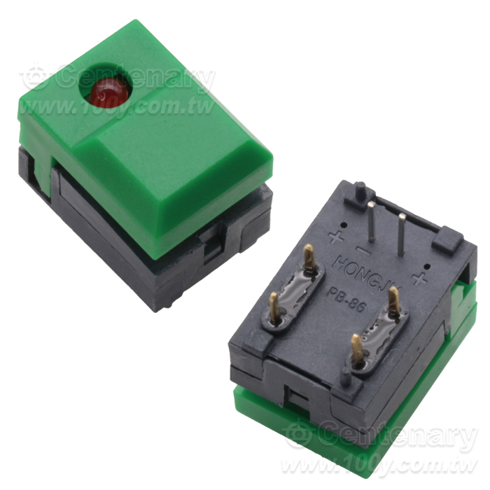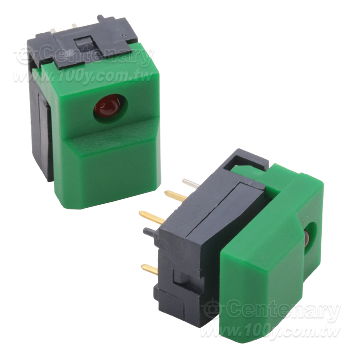 DIP 按鍵開關 小蓋帶單LED,綠蓋,紅LED