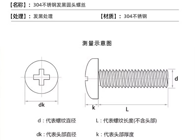 圓頭⊕字-黑色304不銹鋼螺絲