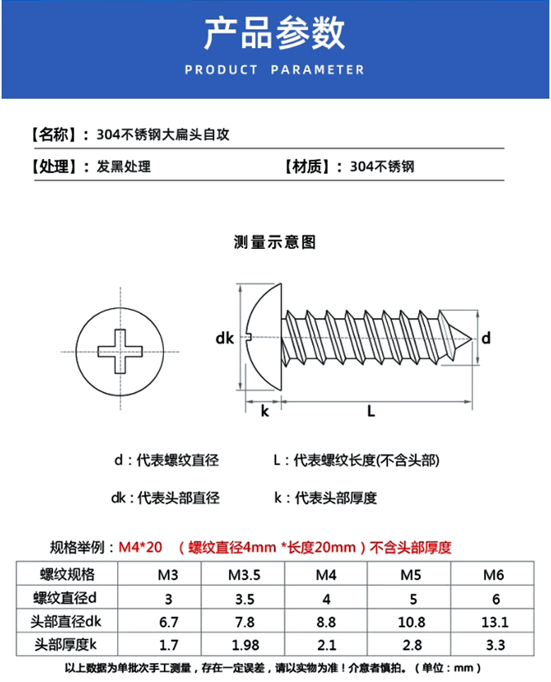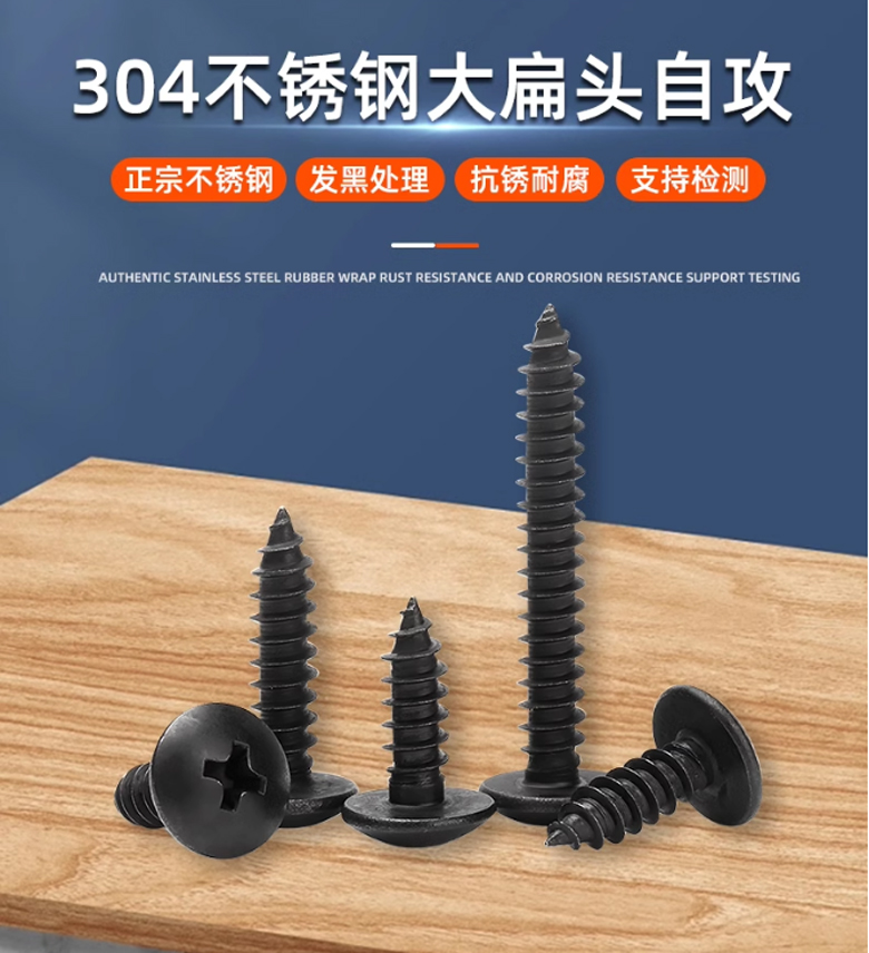 ⊕字黑色304不銹鋼十字大扁頭自攻螺絲