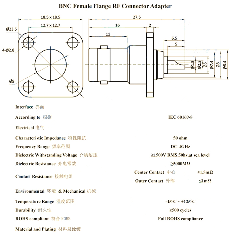BNC-50KF 50歐小法蘭 Q9面板插座