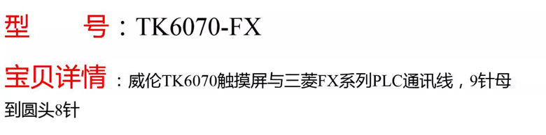 適用威綸觸摸屏TK6071iQ TK6070iP與三菱FX PLC通訊線數據 連接線 2M