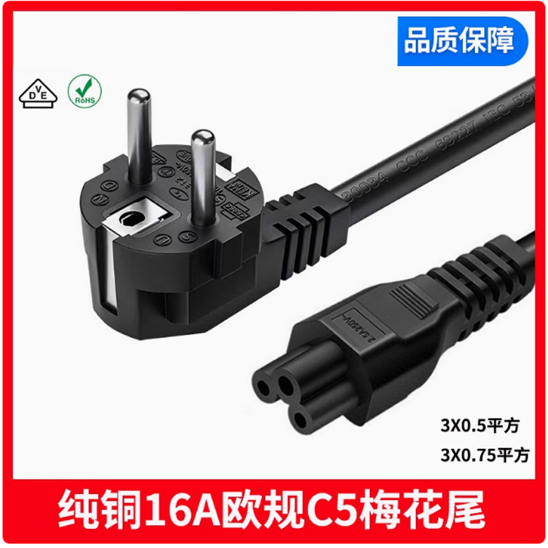 歐規2P電源線+C5梅花尾-0.75平方-3M