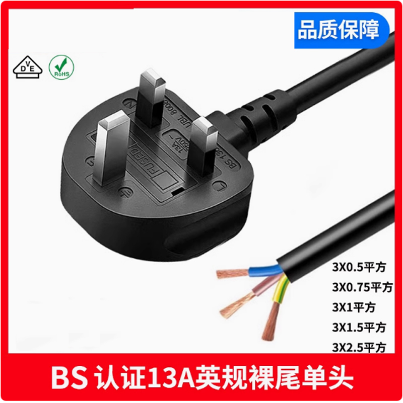 英規3P電源線+尾端剝皮-1.5平方-1.8M