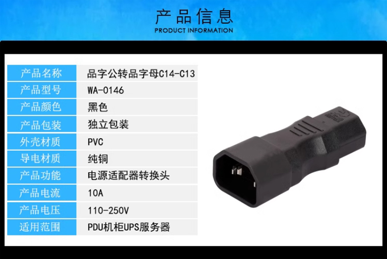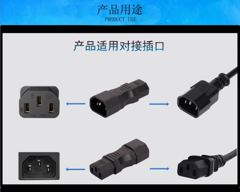 IEC320-C14+C13-直頭-電源轉換頭
