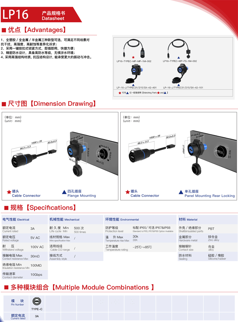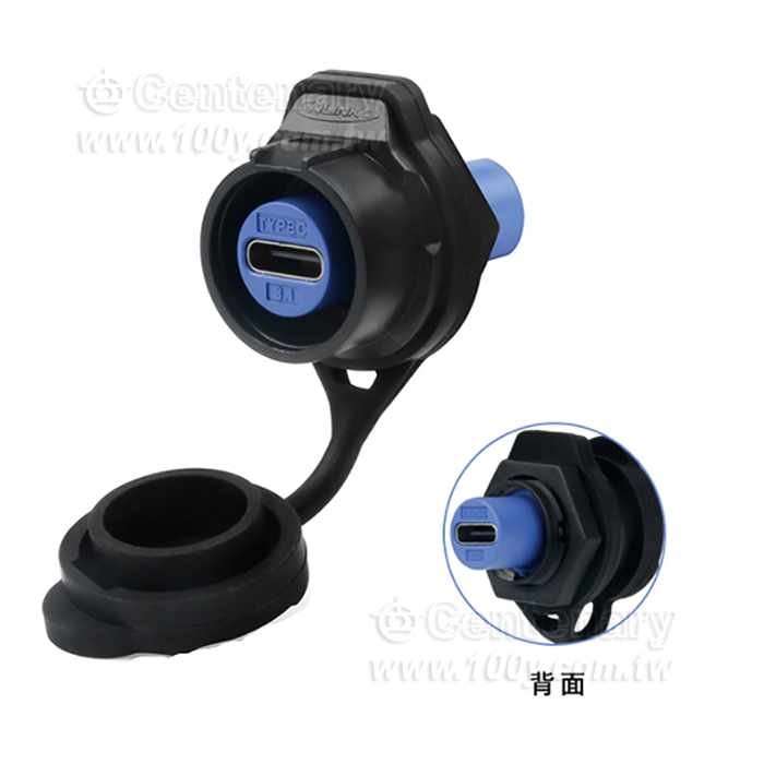 Type C單孔直式母插座塑膠款 (3.1+藍色膠芯)