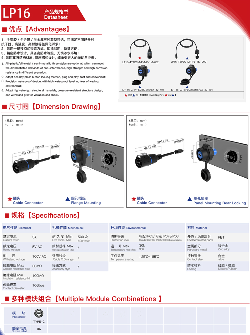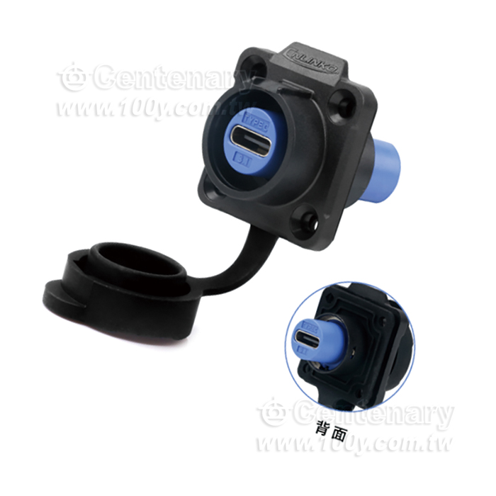 LP16型Type C四孔法蘭母插座塑膠款 (3.1+藍色膠芯)