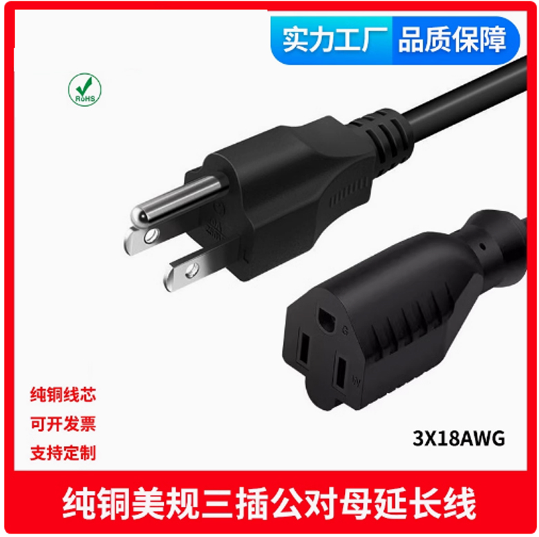 美規3P電源線+5-15P母頭-0.824平方-1.5M