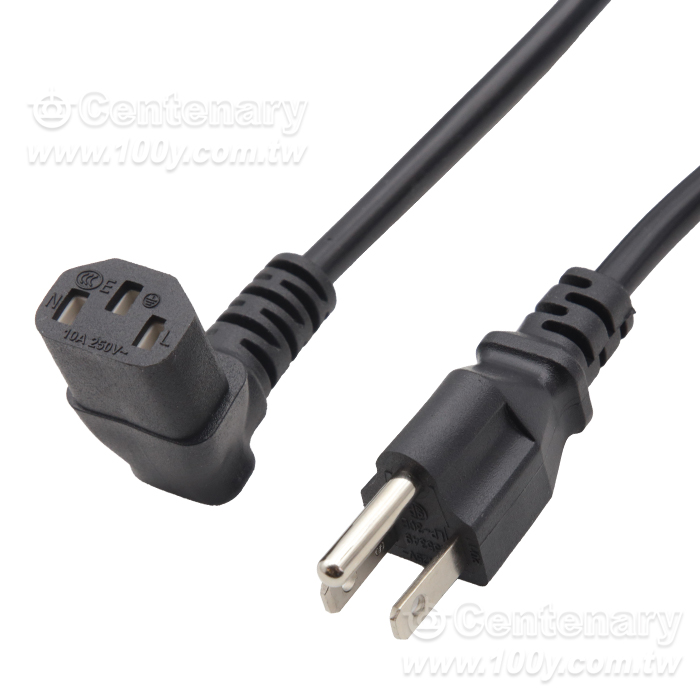 美規3P電源線+C13下彎頭-0.75平方-1.5M