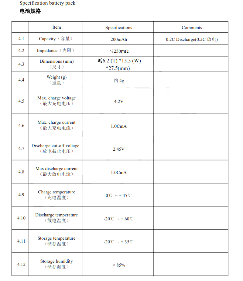 聚合物鋰充電電池(帶保護板) 200mAh/3.7V