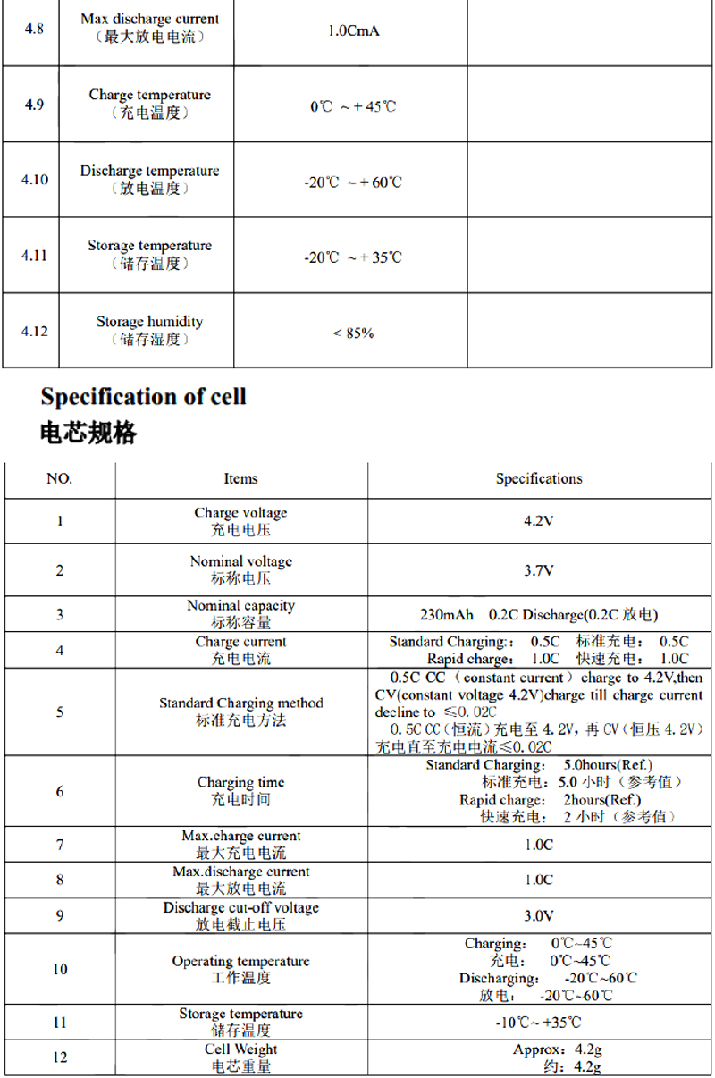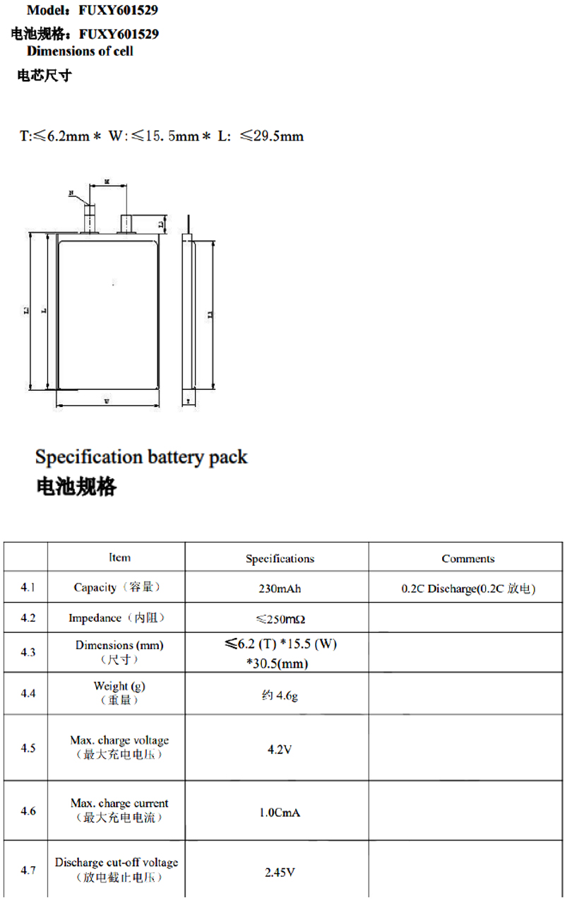 聚合物鋰充電電池(帶保護板) 230mAh/3.7V