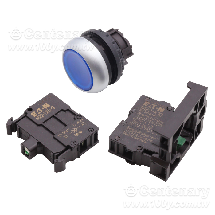 EATON伊頓帶燈平齊自複位按鈕成套 藍色Blue