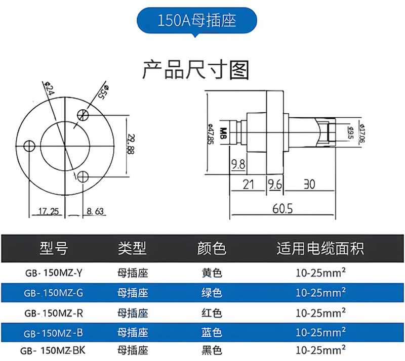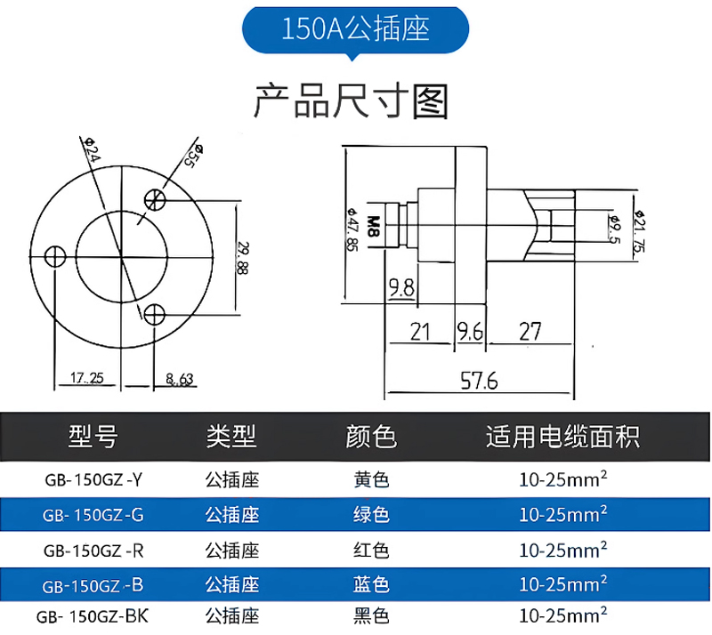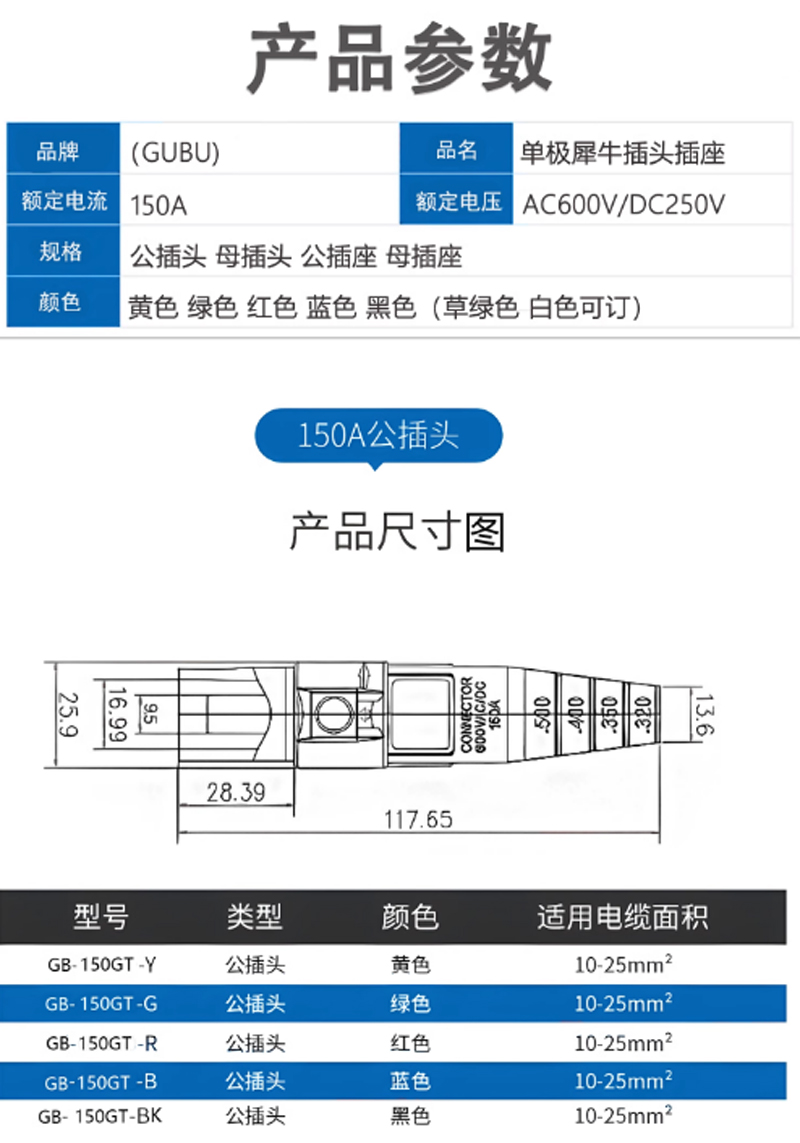150A犀牛插頭 公頭 藍色