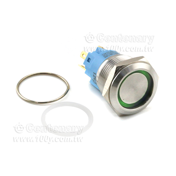 Φ19mm 金屬帶燈按鈕開關 24V 黃色