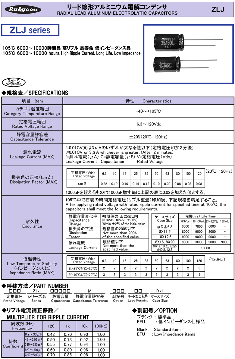 ZLJ-3300uF/10V ±20% 105℃ 12.5*25mm