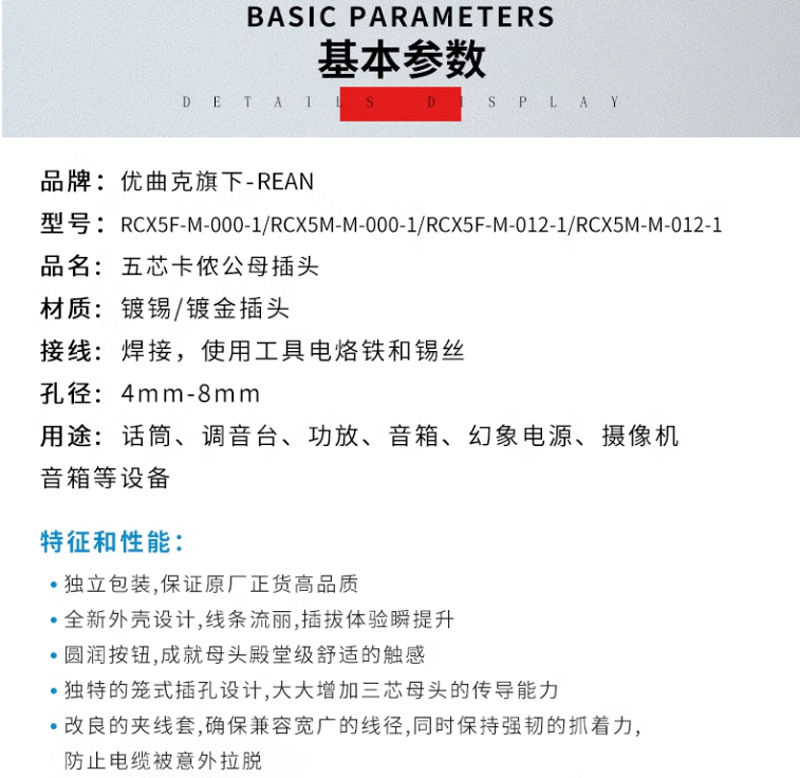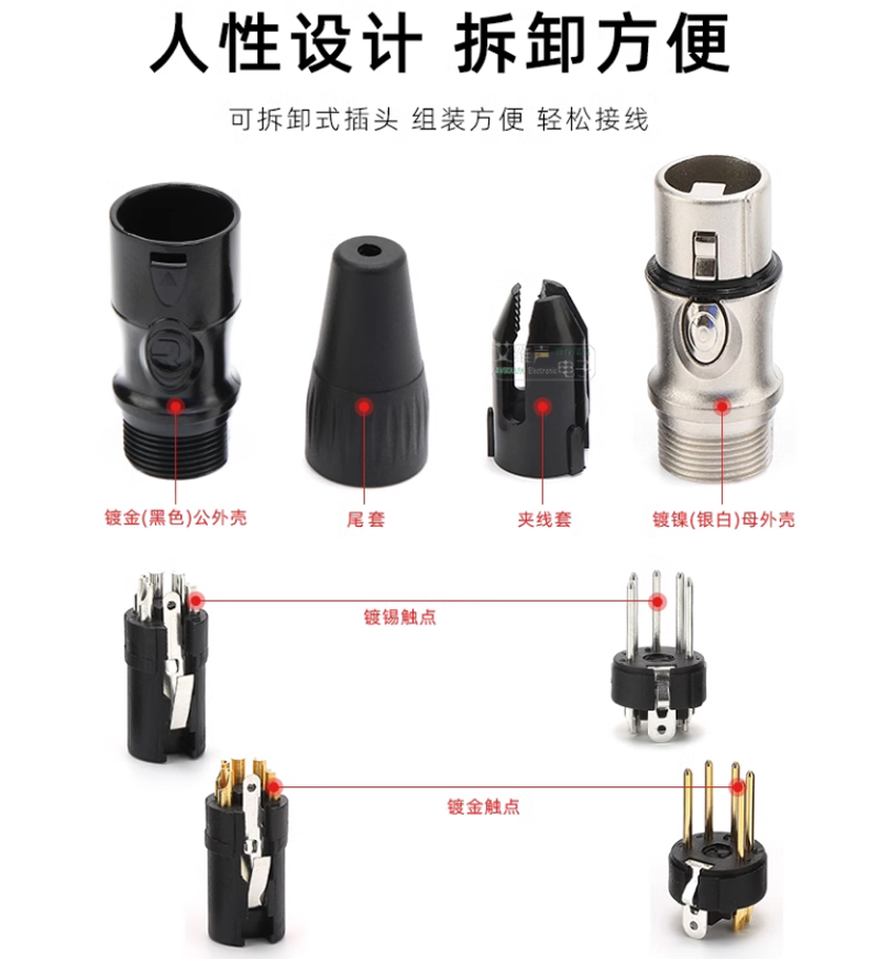 五芯卡農卡儂公頭鍍金 (鋁合金)