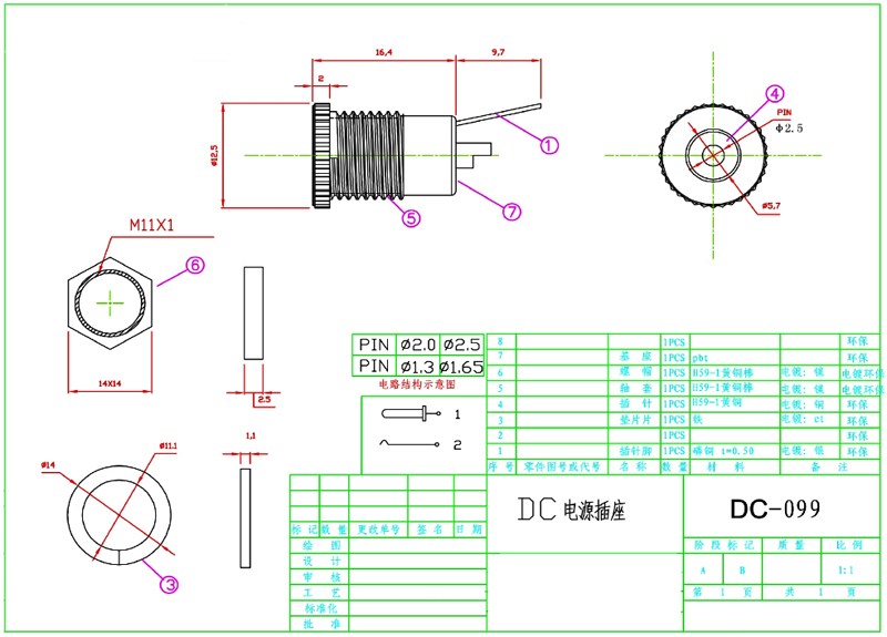 DC金屬電源插座帶線5.5*2.1MM 線長10CM