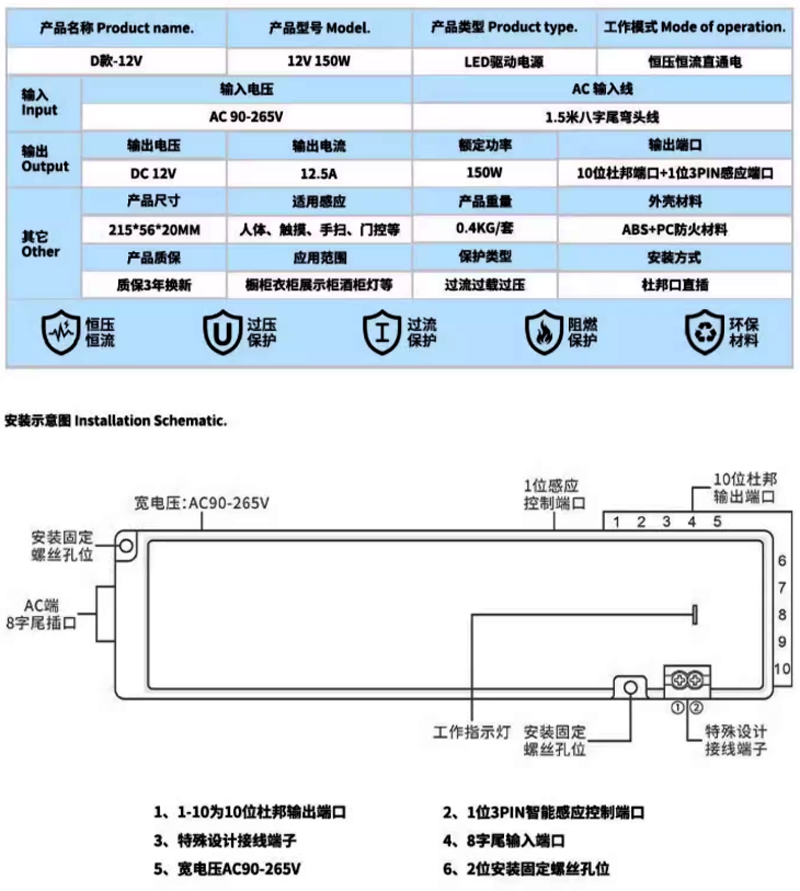 LED櫥衣櫃燈帶電源-12V/150W