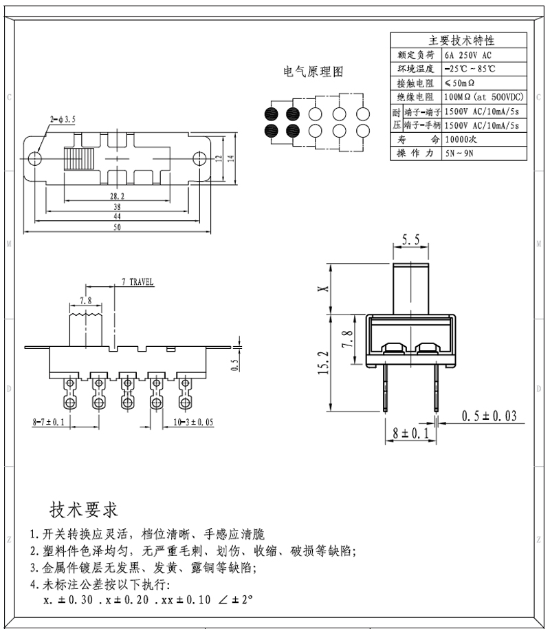 10P 4段滑動開關 3A250V 8A125VAC (有耳)