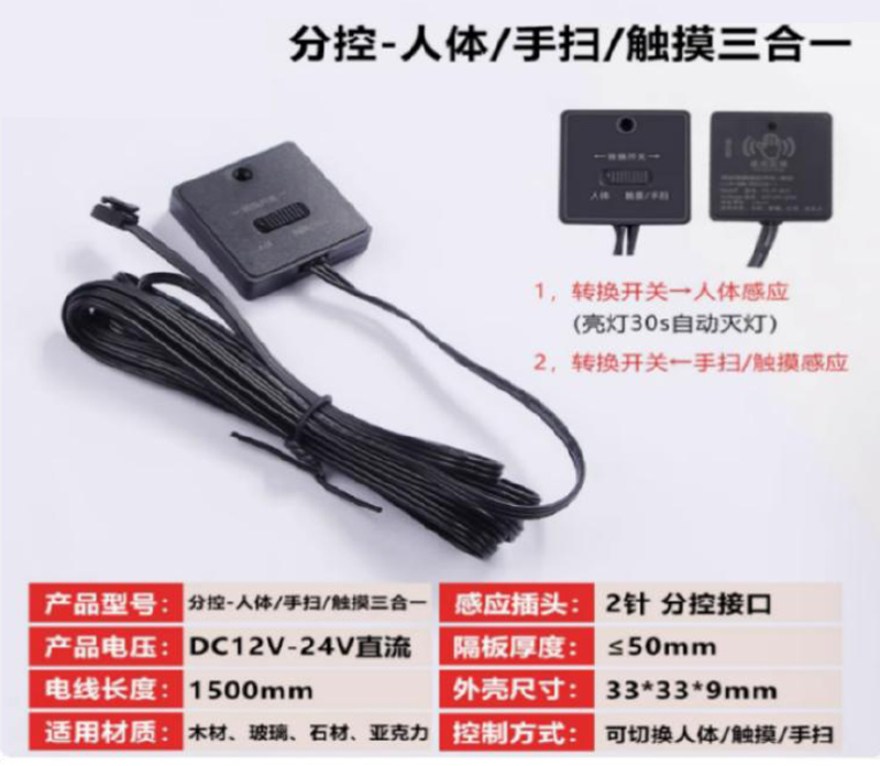 櫥衣櫃感應開關-分控-人體/手掃/觸摸三合一
