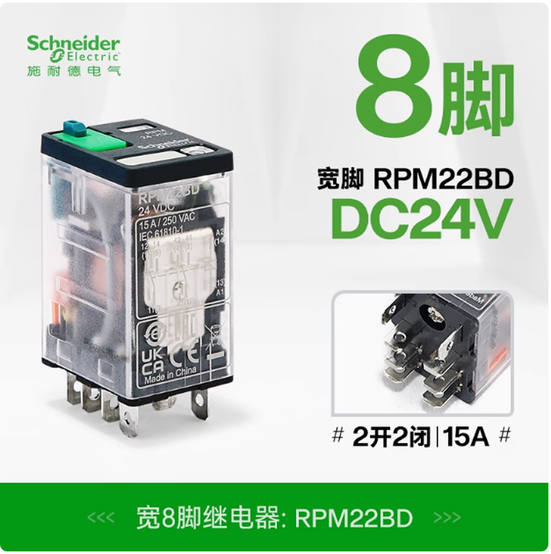 大功率繼電器 DC24V/15A 8腳 2開2閉