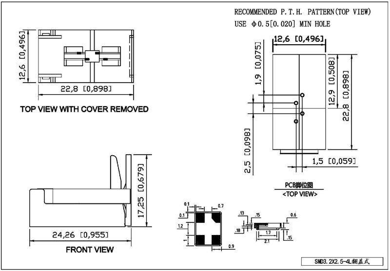 SMD3.2*2.5-4L翻蓋式+轉接板