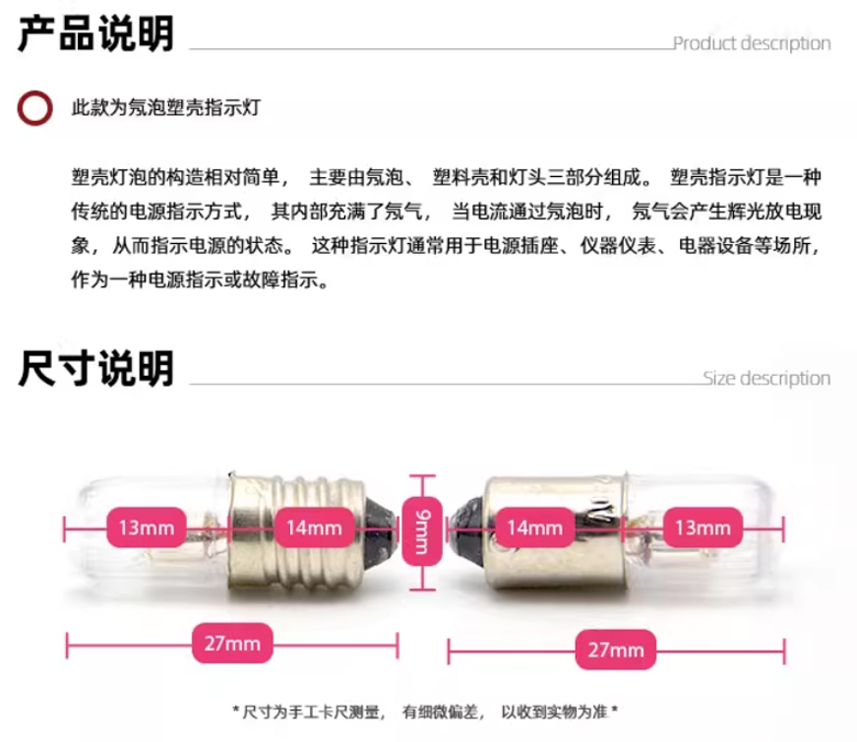 塑殼氖泡E10信號燈珠 綠光 螺口