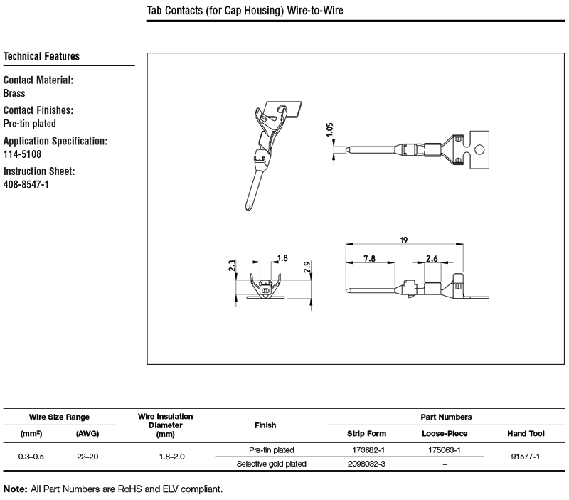 For Multi-Lock 2.50mm 公端子 20-22 AWG